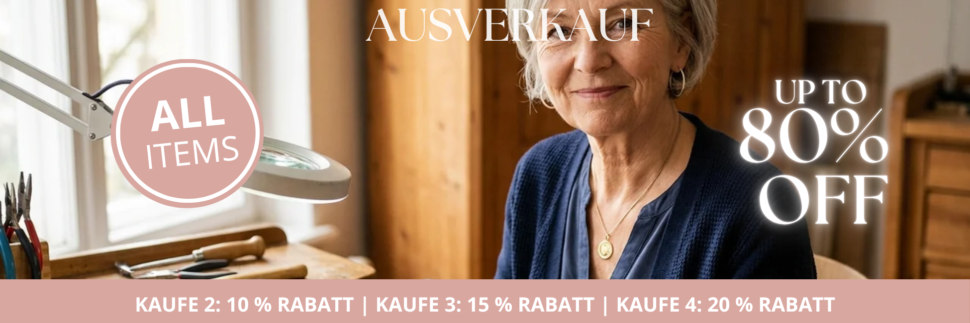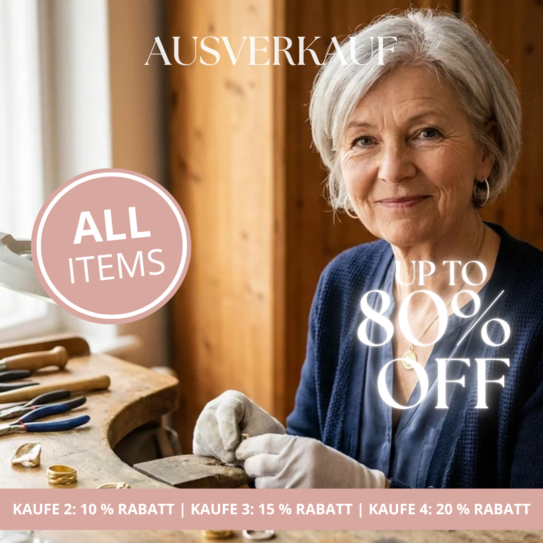 Während unseres Ausverkaufs profitierst du von exklusiven automatischen Rabatten auf die gesamte Kollektion. Verpasse nicht die Gelegenheit, deiner eigenen Sammlung etwas ganz Besonderes hinzuzufügen.